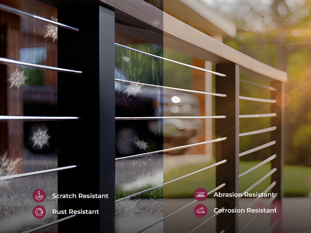 Absolutely! All our posts come powder-coated with a 5-layer black finish that’s made to withstand even the most extreme weather conditions. This protective layer defends against flaking, chipping, scratches, and color deterioration. Outdoor paint of any color will adhere to the protective layer — in fact, weather-resistant paint can even add an additional layer of defense against the elements, while customizing your rails to look exactly the way you want.